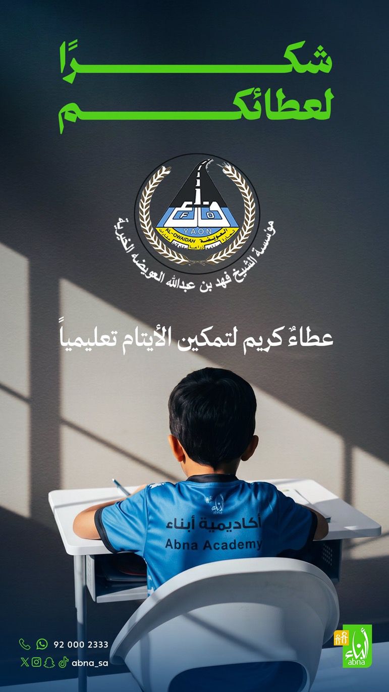 بدعمٍ كريم من مؤسسة الشيخ فهد بن عبدالله العويضة الخيرية "رحمه الله"…